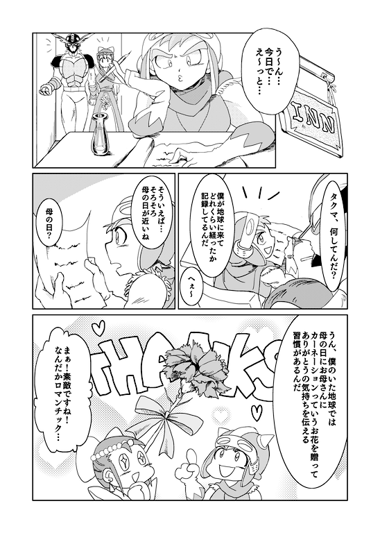 勇者から母の日の習慣について教わってソニアにカーネーションを贈ろうとするギャブロの話です!26P/300円の予定です!