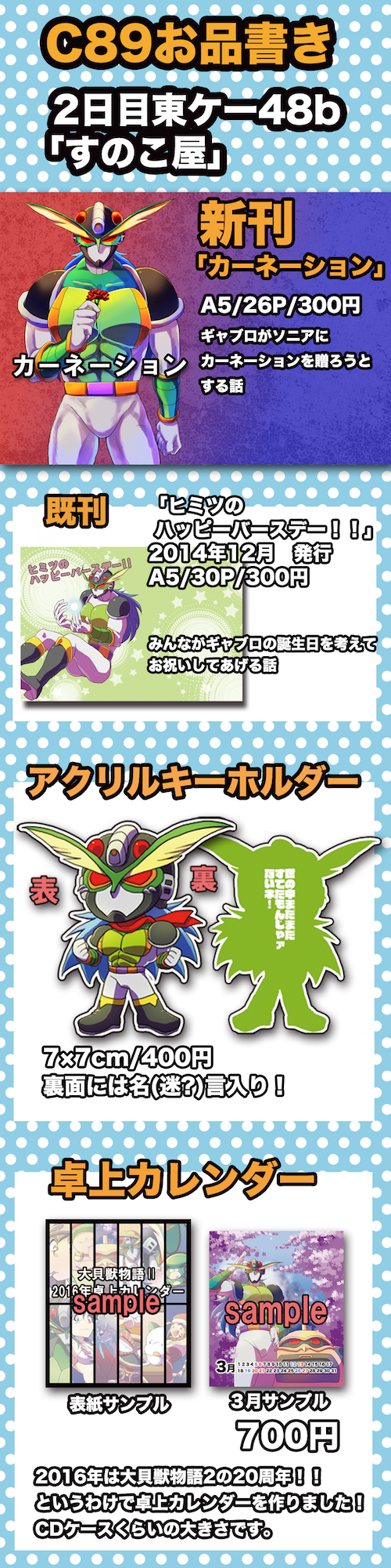 大貝獣物語2中心に同人誌を描いている、サークルすのこ屋のブログです。